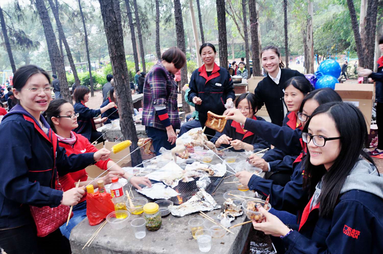 2015年11月28日,清爽又帶有一絲寒意的天氣,讓人格外舒適。早上12點整,歐美達大部隊順利到達僑鑫生態園,準備開展一場戶外燒烤活動。走進生態園,映入大家眼簾的是兩邊繁茂的大樹,繼續沿著小路向前走,可以看到,這邊是“小山莊動物園”,那邊是“石潭映月”,賞心悅目的景色;讓大家都迫不及待地加快腳步奔向燒烤場地。此時,看到早已準備好的烤爐與食材,著實地勾起來了大家的食欲。相互協助地開始串肉食、取碳、生火……,更有一些同事自備的特色食物;引起了大家的興奮吆喝著;高興地不亦樂乎。一會兒,燒烤場中飲煙裊裊,霎時各種烤肉的香味彌漫天空。大家圍著爐中坐,笑聲、歡呼聲匯成了一溫馨的首歌,唱響著幸福旋律。